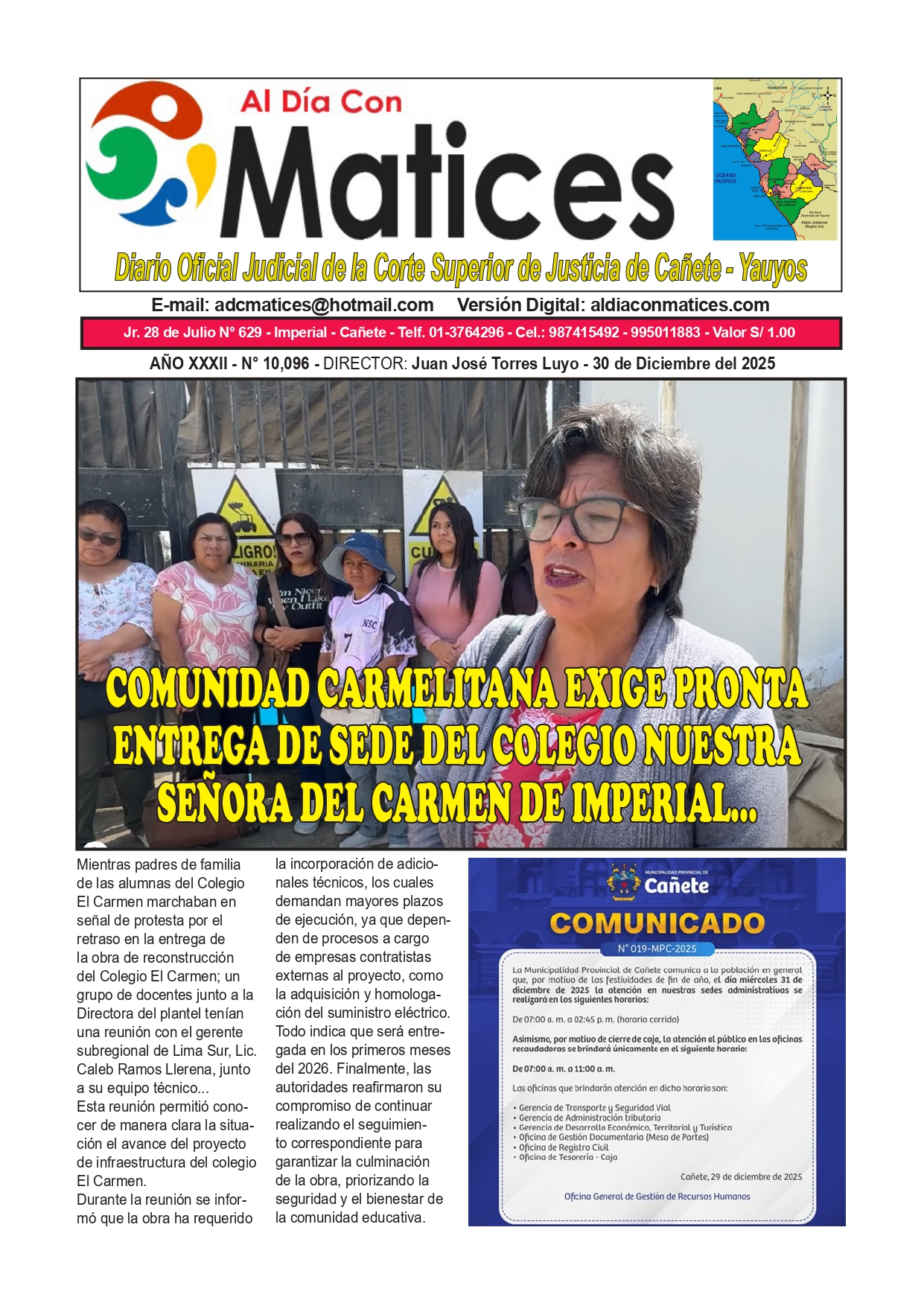 CEREMONIA PROTOCOLAR POR LOS 467° ANIVERSARIO DE CAÑETE - DISCURSO DEL ALCALDE PROVINCIAL