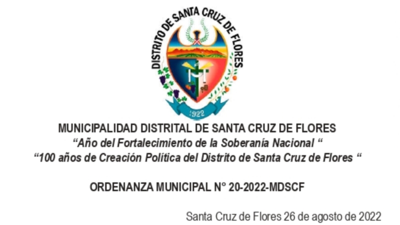 ORDENANZA MUNICIPAL N° 20-2022-MDSCF