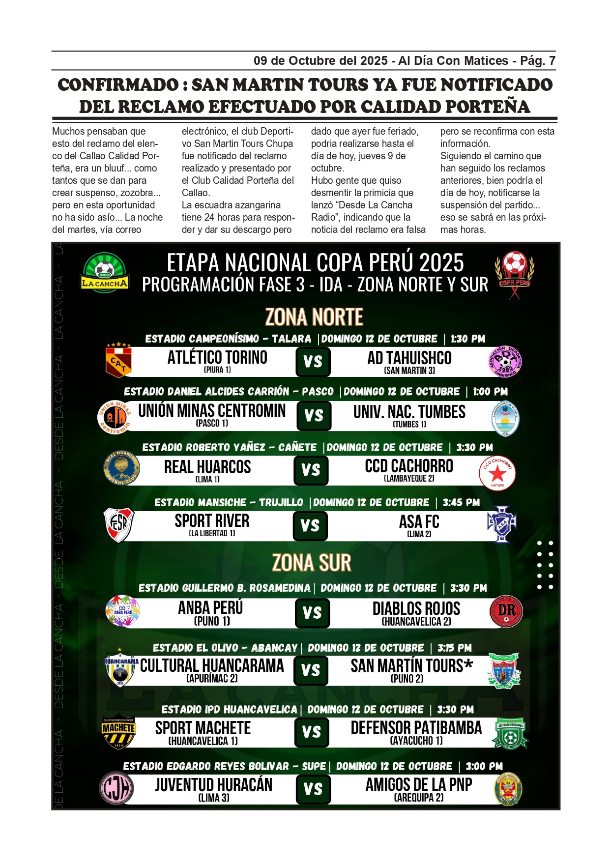 CONFIRMADO : SAN MARTIN TOURS YA FUE NOTIFICADO DEL RECLAMO EFECTUADO POR CALIDAD PORTEÑA
