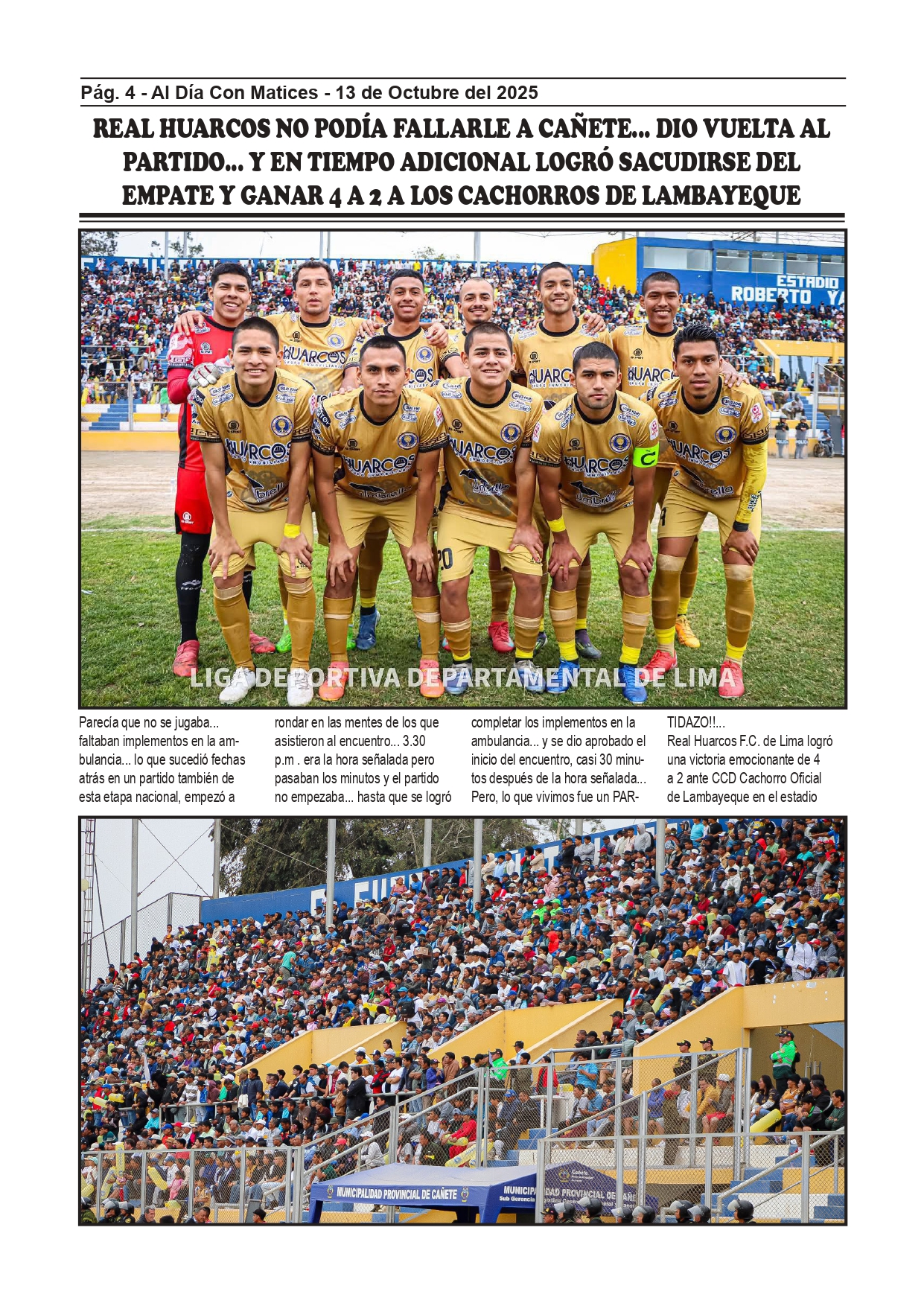 REAL HUARCOS NO PODÍA FALLARLE A CAÑETE... DIO VUELTA AL PARTIDO... Y EN TIEMPO ADICIONAL LOGRÓ SACUDIRSE DEL EMPATE Y GANAR 4 A 2 A LOS CACHORROS DE LAMBAYEQUE