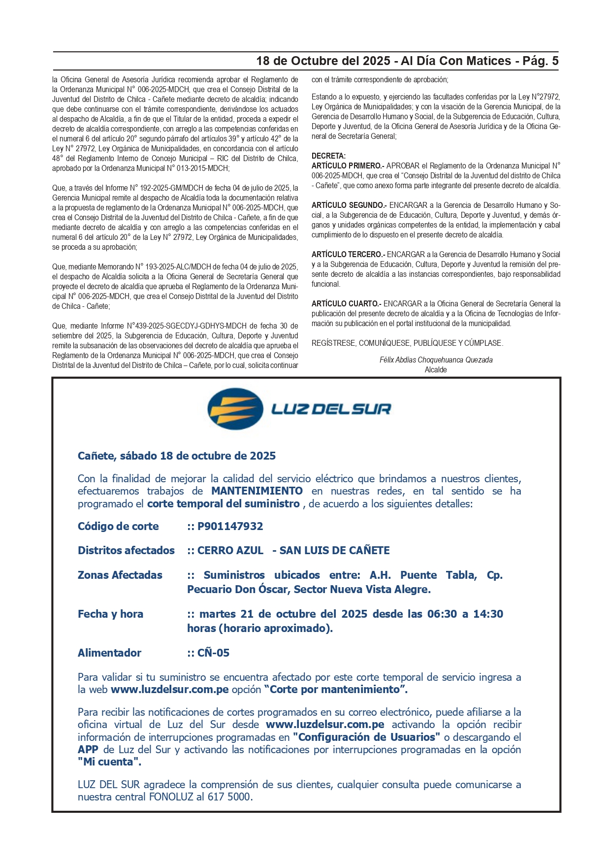 DECRETO DE ALCALDÍA N° 010-2025-MDCH