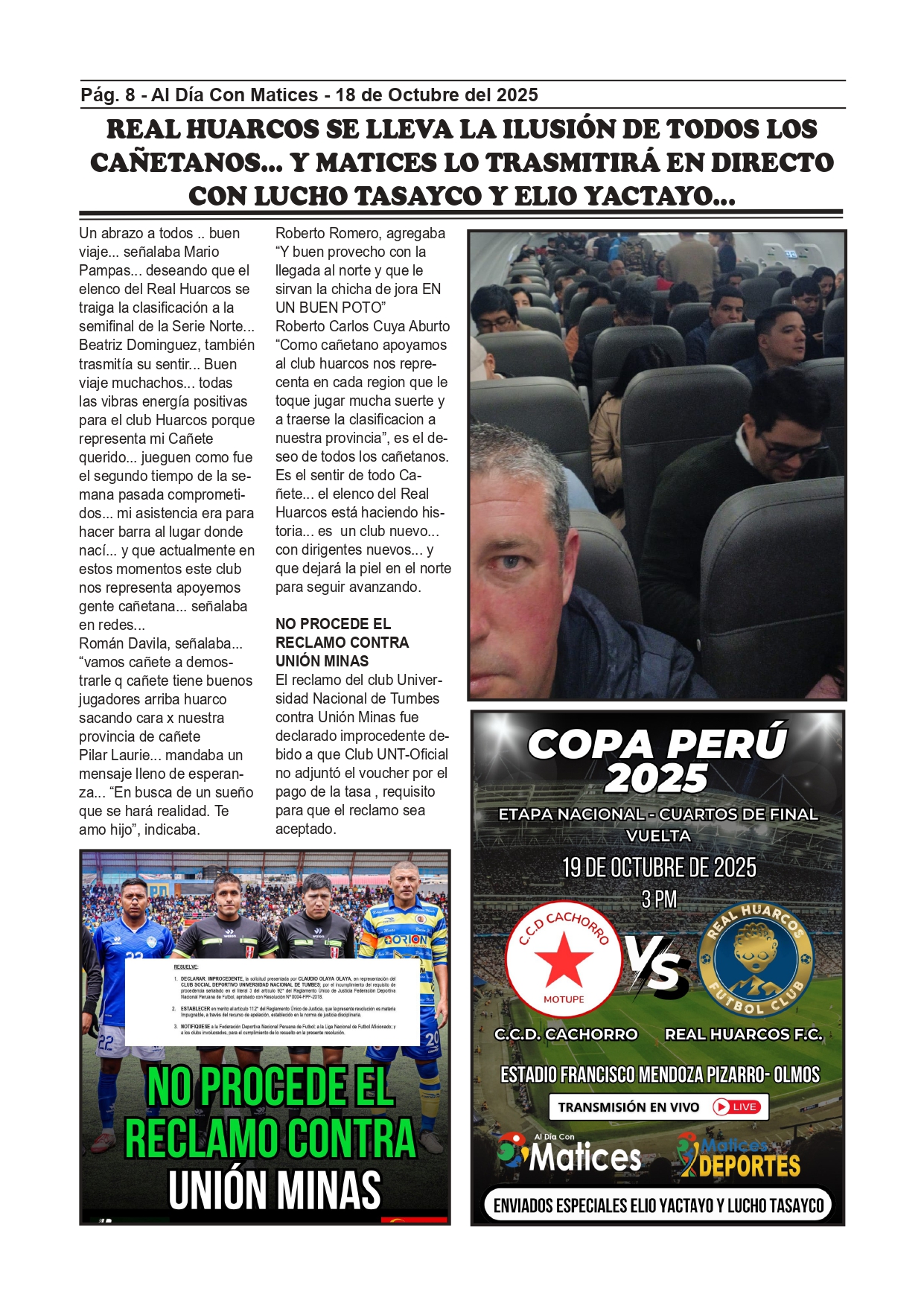 REAL HUARCOS SE LLEVA LA ILUSIÓN DE TODOS LOS CAÑETANOS... Y MATICES LO TRASMITIRÁ EN DIRECTO CON LUCHO TASAYCO Y ELIO YACTAYO...