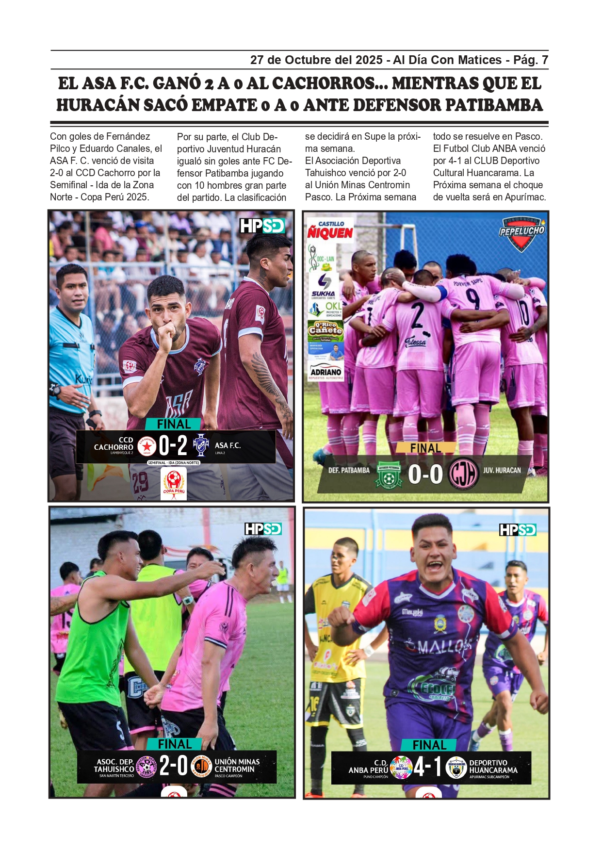 EL ASA F.C. GANÓ 2 A 0 AL CACHORROS... MIENTRAS QUE EL HURACÁN SACÓ EMPATE 0 A 0 ANTE DEFENSOR PATIBAMBA