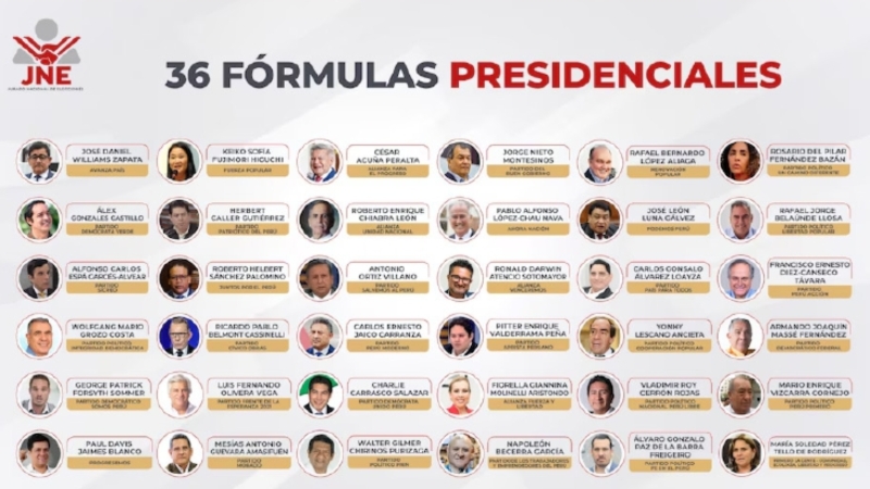 País para Todos: Carlos Álvarez, el reconocido humorista, encabezará la única fórmula presidencial presentada ante el Jurado Nacional de Elecciones (JNE) por el partido País Para Todos. Álvarez estará acompañado en la fórmula por María Chambizea Reyes, quien se postula como candidata a la primera vicepresidencia, y Diego Guevara Vivanco, quien buscará la segunda vicepresidencia.