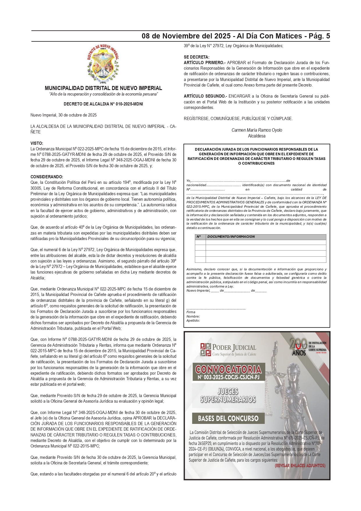 DECRETO DE ALCALDIA N° 010-2025-MDNI