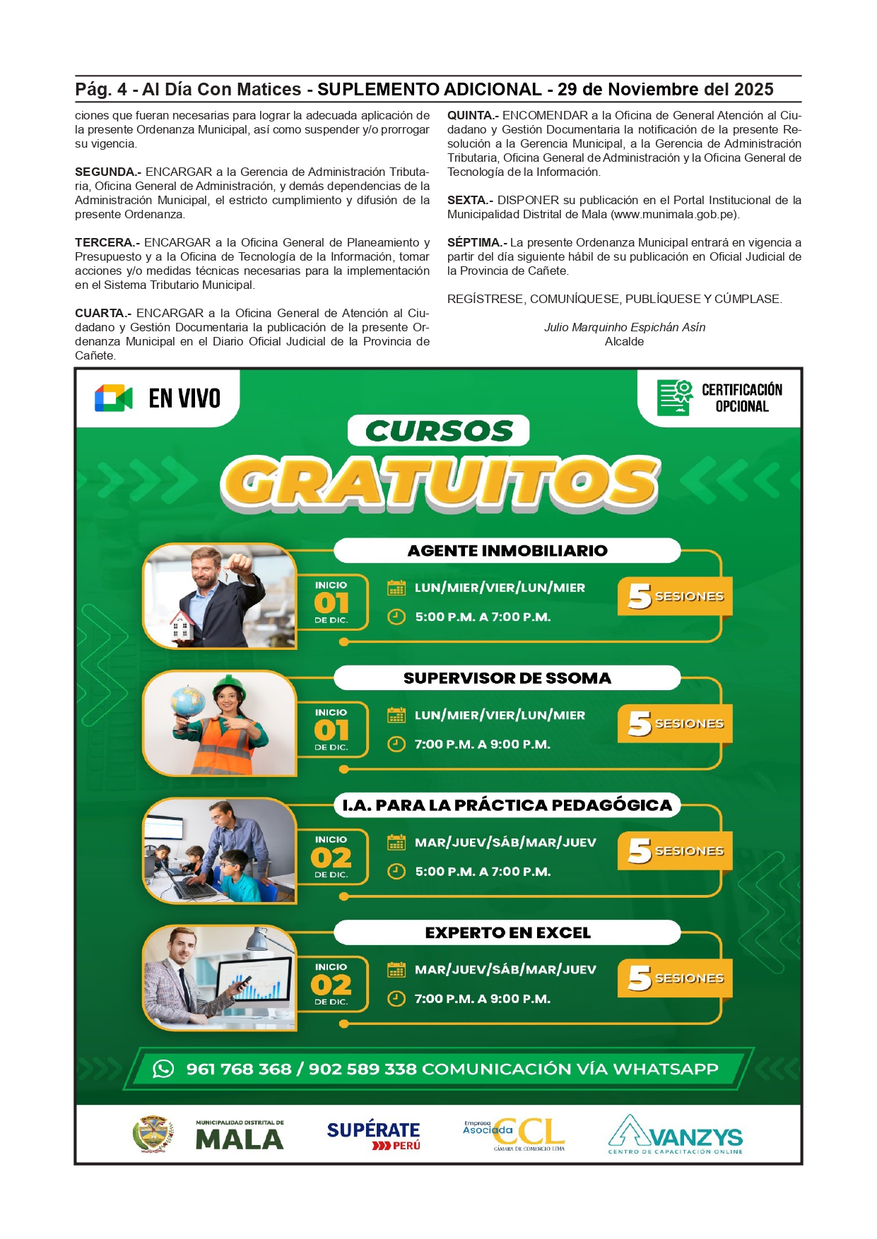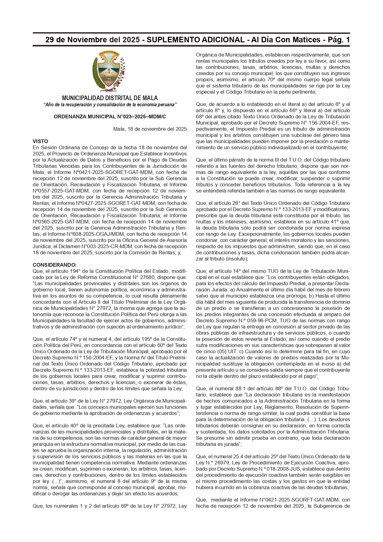 ORDENANZA MUNICIPAL N°023–2025–MDM/C