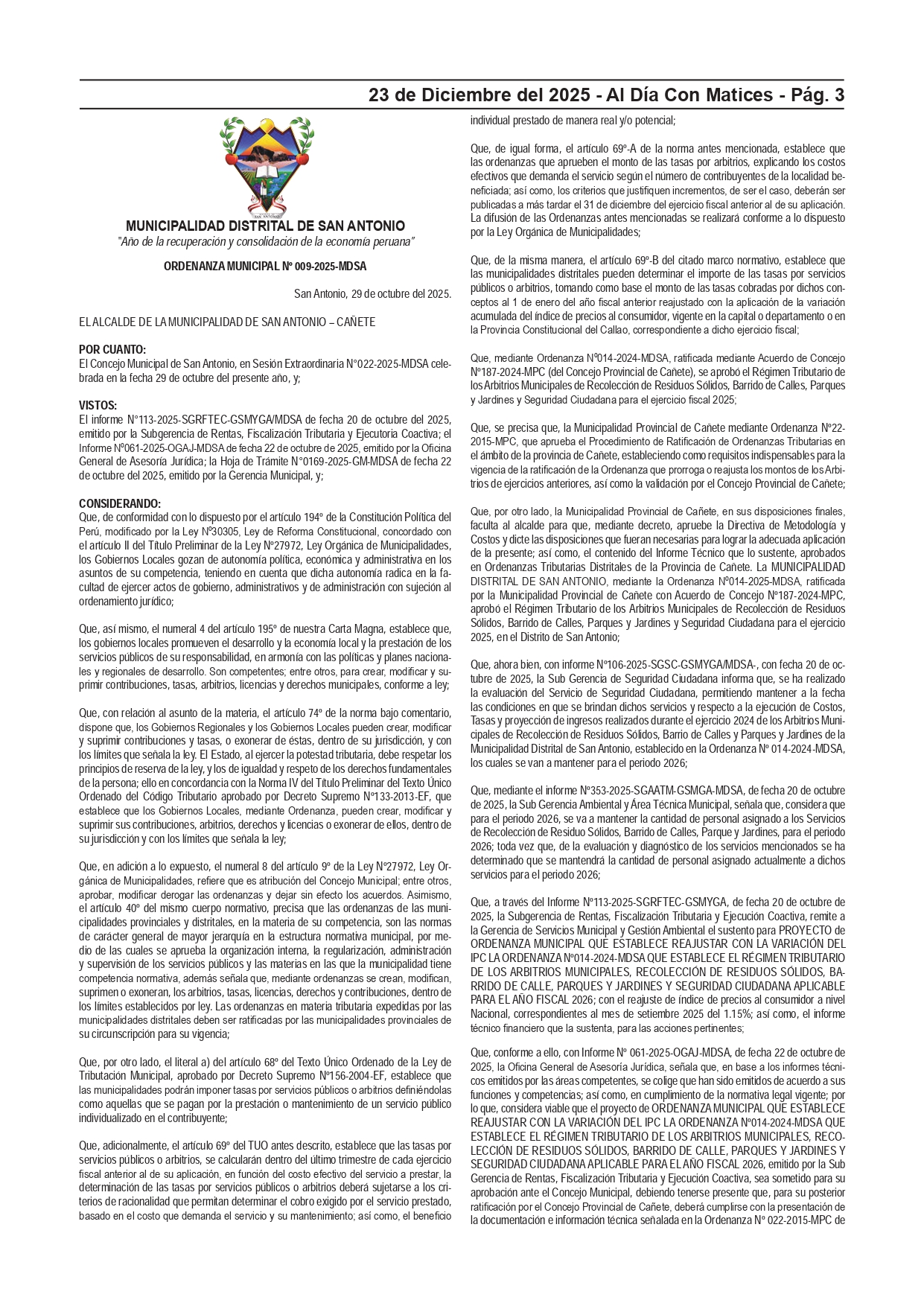 ORDENANZA MUNICIPAL Nº 009-2025-MDSA