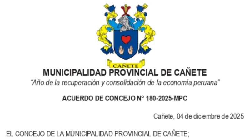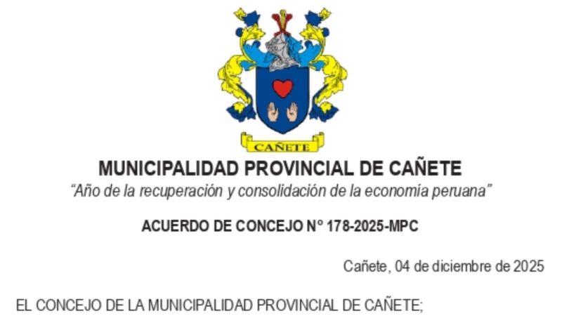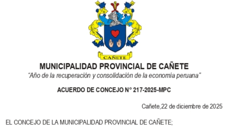 EL CONCEJO DE LA MUNICIPALIDAD PROVINCIAL DE CAÑETE;