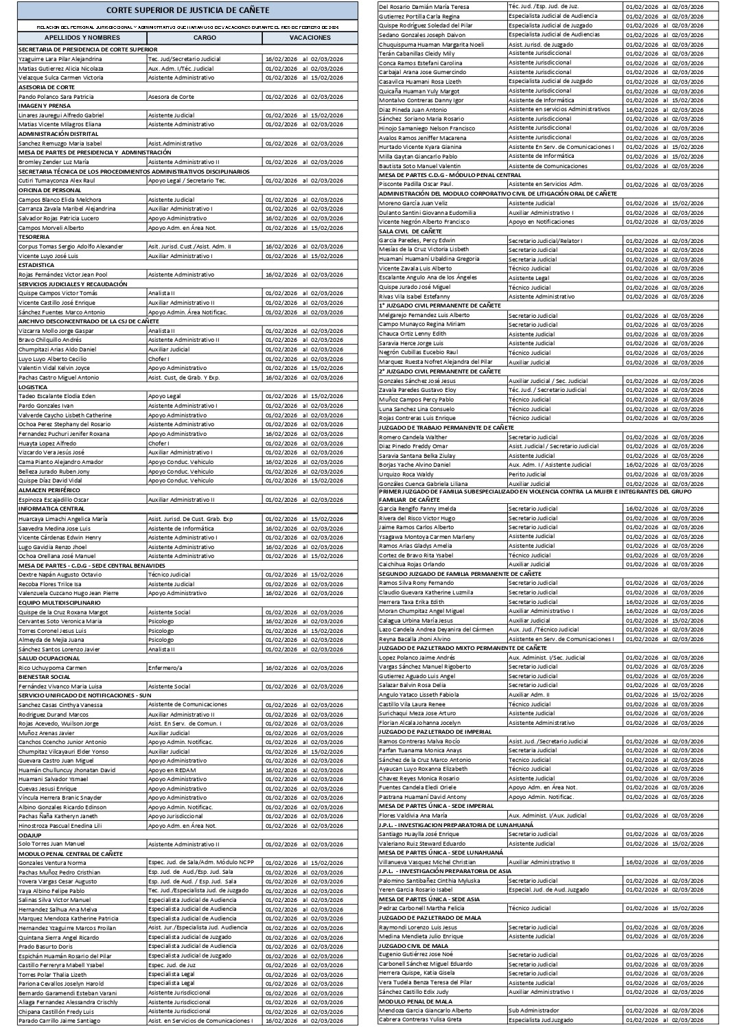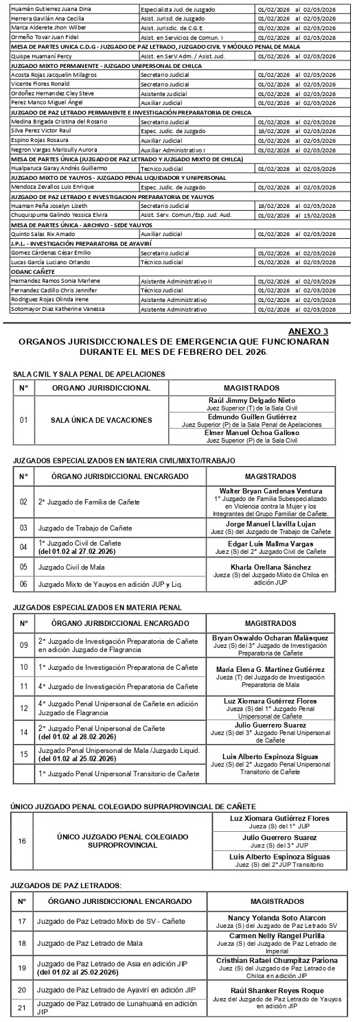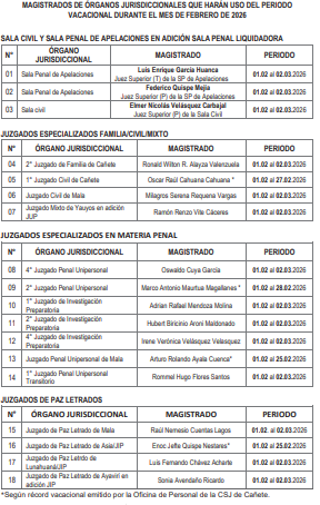 MAGISTRADOS DE ÓRGANOS JURISDICCIONALES QUE HARÁN USO DEL PERIODO VACACIONAL DURANTE EL MES DE FEBRERO DE 2026