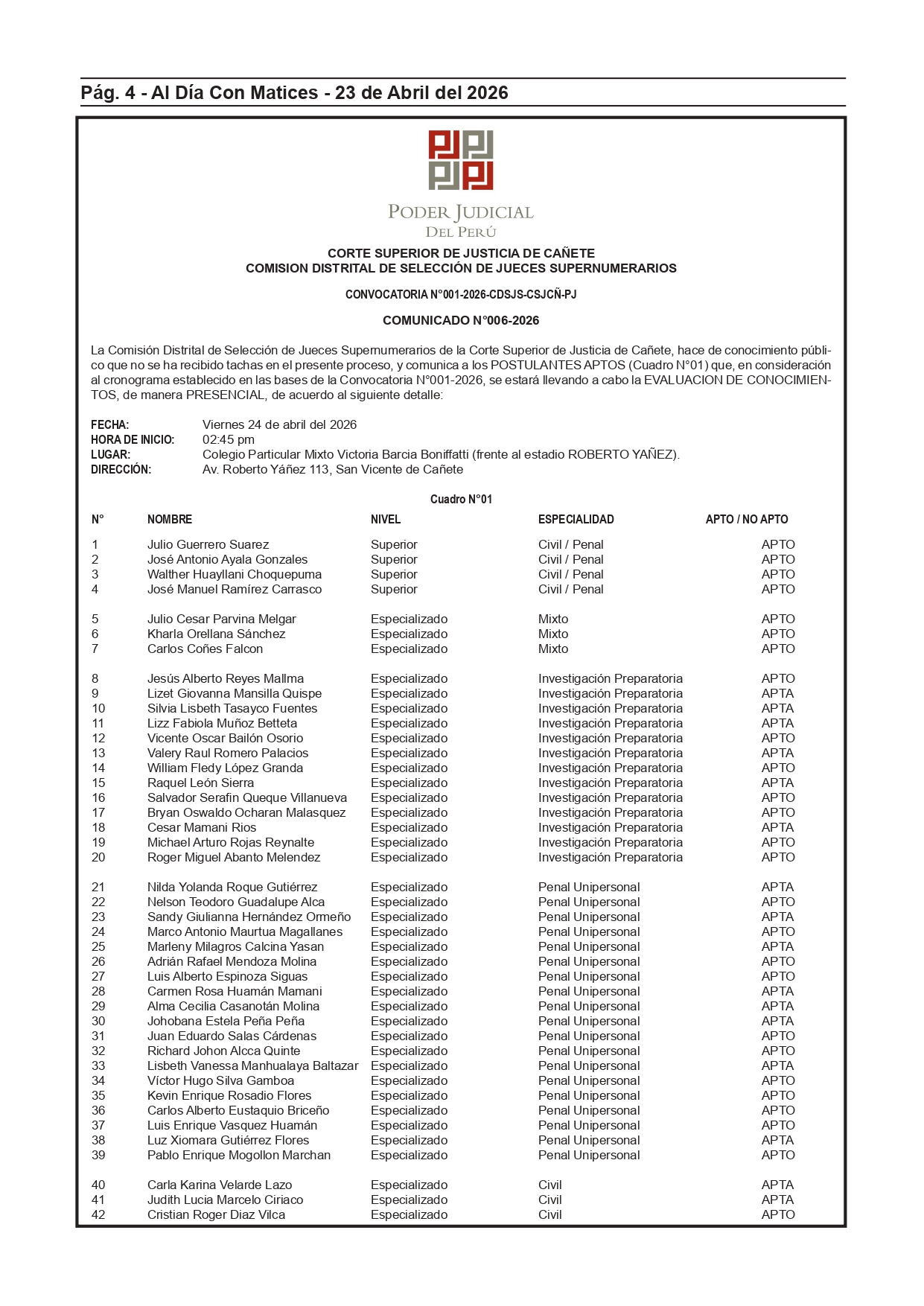 COMUNICADO N°006-2026 (PRIMERA PARTE)